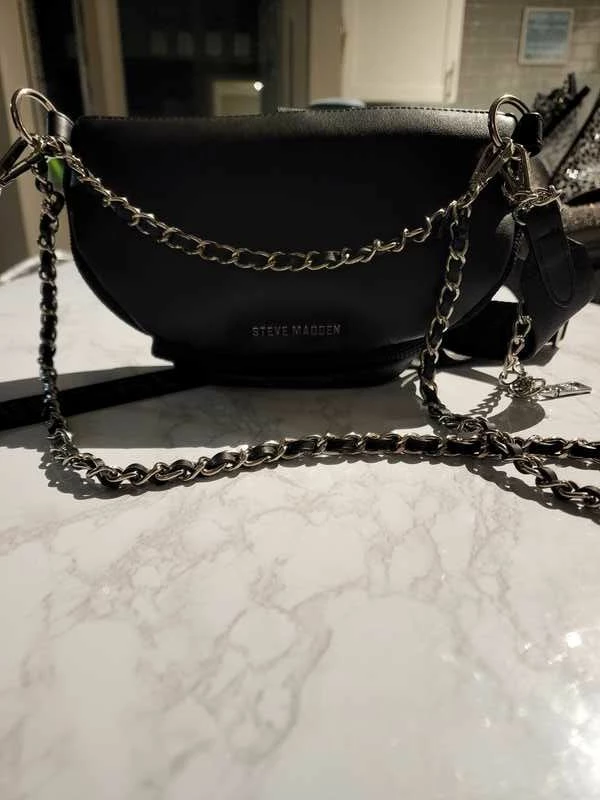 - Chain Strap 34.5″-43.5″; Fabric Strap 46″-62″- used as a belt bagΒ