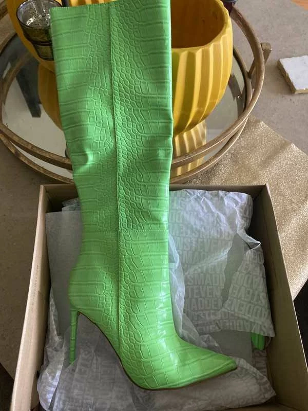 Nothing is sexier and more timeless than a tall stiletto-heeled boot and IDINA proves just that. Available in pink or green, this stunning style steals the show no matter what you pair them with.