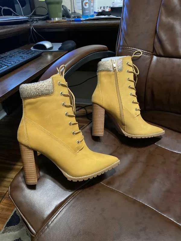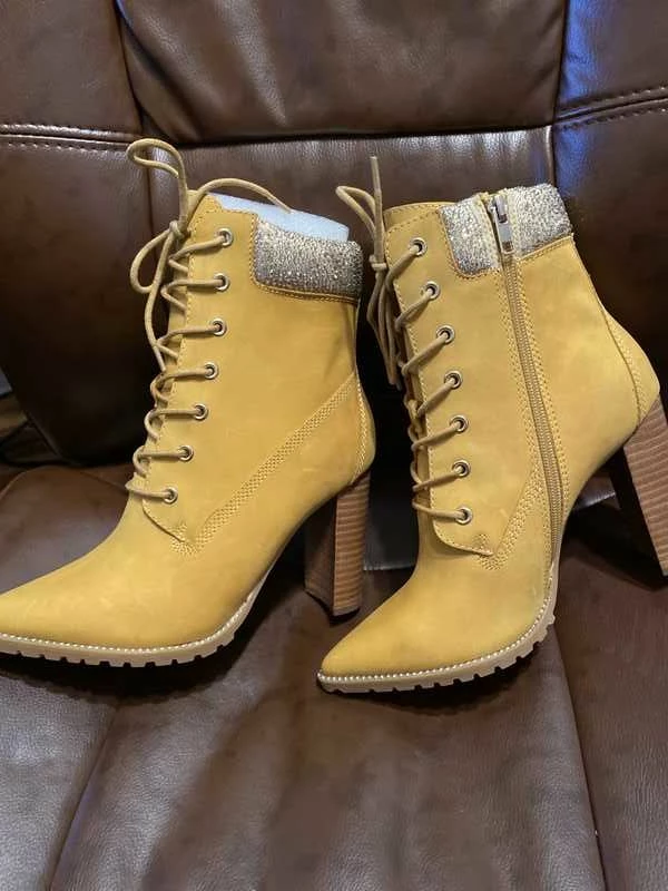 Take bold steps in KARMEN. A utility boot gets a sexy update set on a towering, stacked heel, and finished with a pointed-toe. Wear with your perfect fit jeans or with bare legs for a head-turning look.