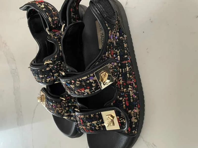 Offered in posh uppers with fancy gold tone hardware, this comfort sandal masters the art of high-low style. A luxe look and pampered feel⦠what more could you want?