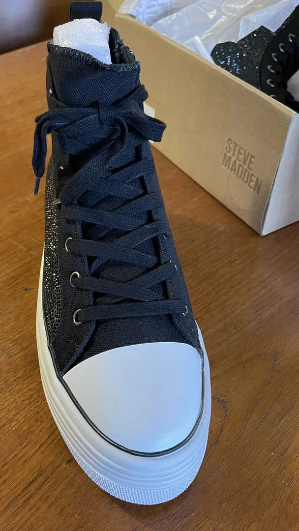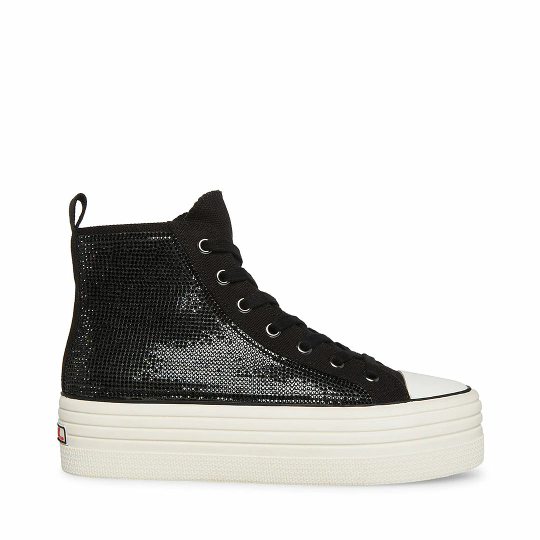 Covered in sparkling rhinestones, BERKER is all about the bling. These high-top sneakers sit on an exaggerated platform, giving dresses and jeans a cool style lift.