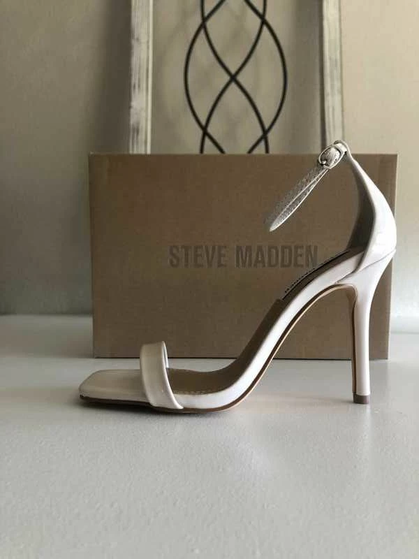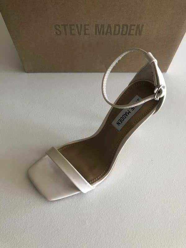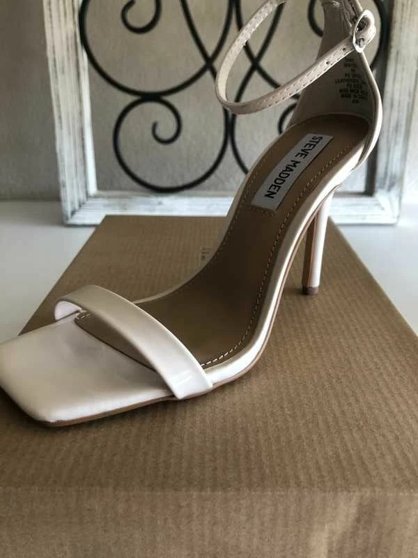 This chic open-toe stiletto sandal exudes a confident, feminine appeal. Thin, barely-there straps and a slender heel complete this look.