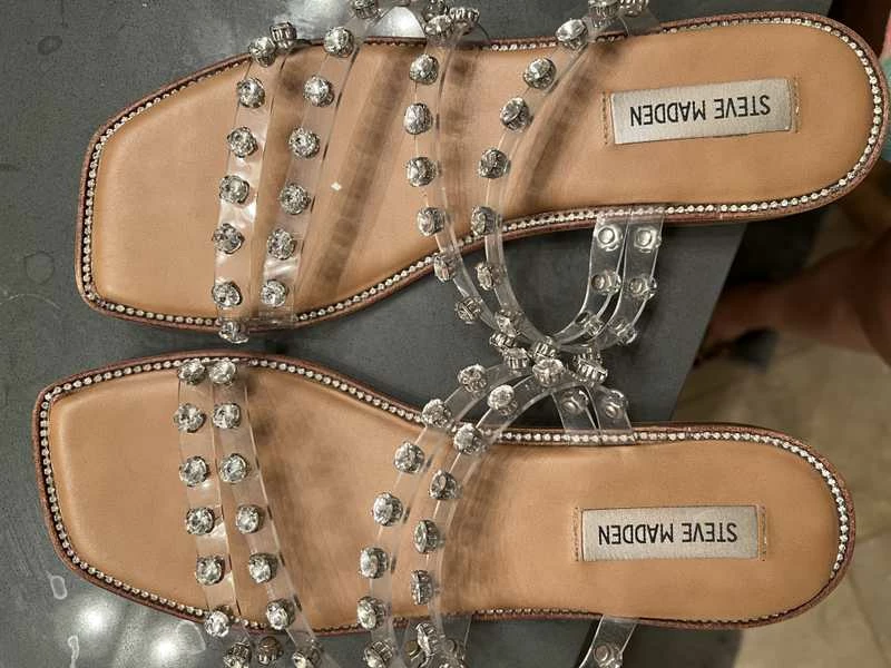 Trimmed in glamorous rhinestones or edgy pyramid studs, this strappy slide gives getups a festive finishing touch. A barely-there heel punctuates, offering support and gentle lift that wonβt slow your stride.