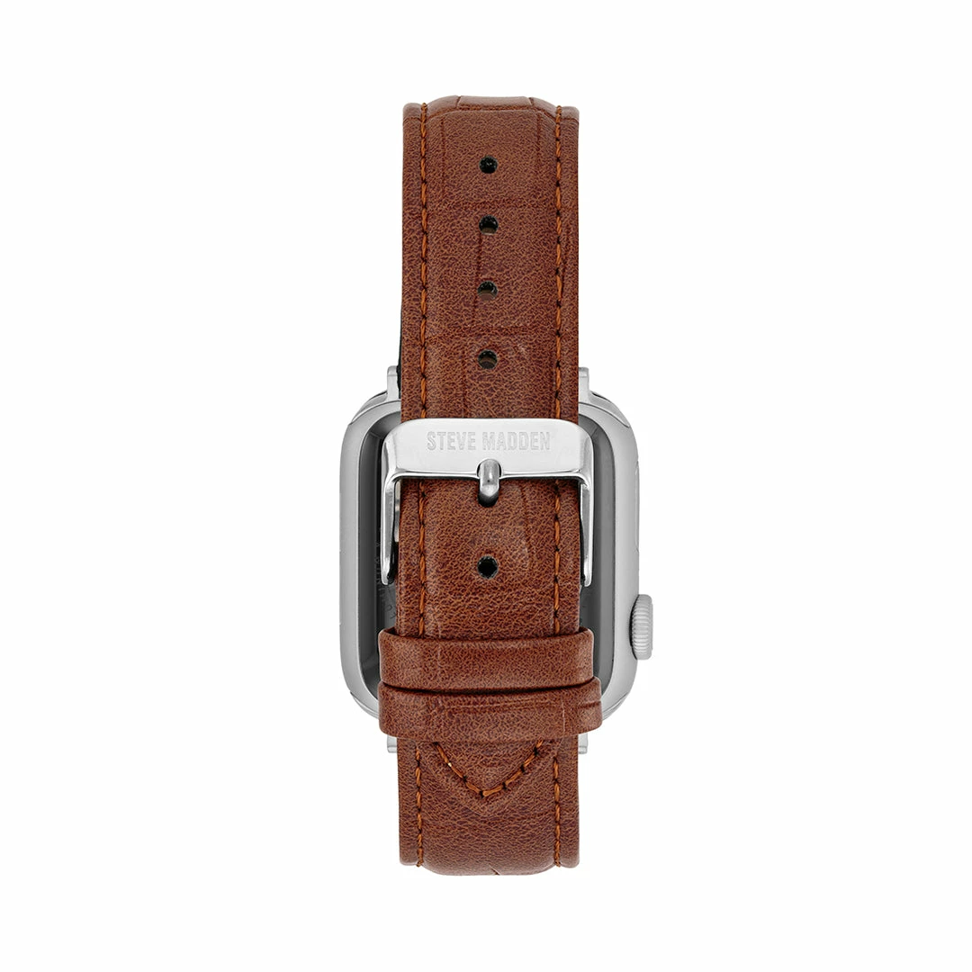 - Brown simulated leather strap with croco pattern