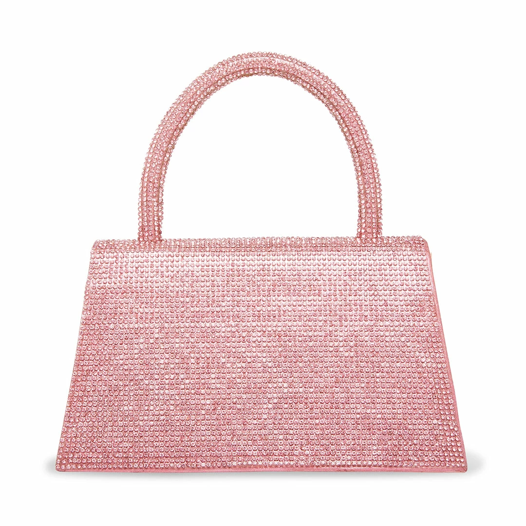 BAMINA is a structured trapezoid bag that’s encrusted with alloverΒ rhinestoneΒ embellishment and finished with a matching top handle.