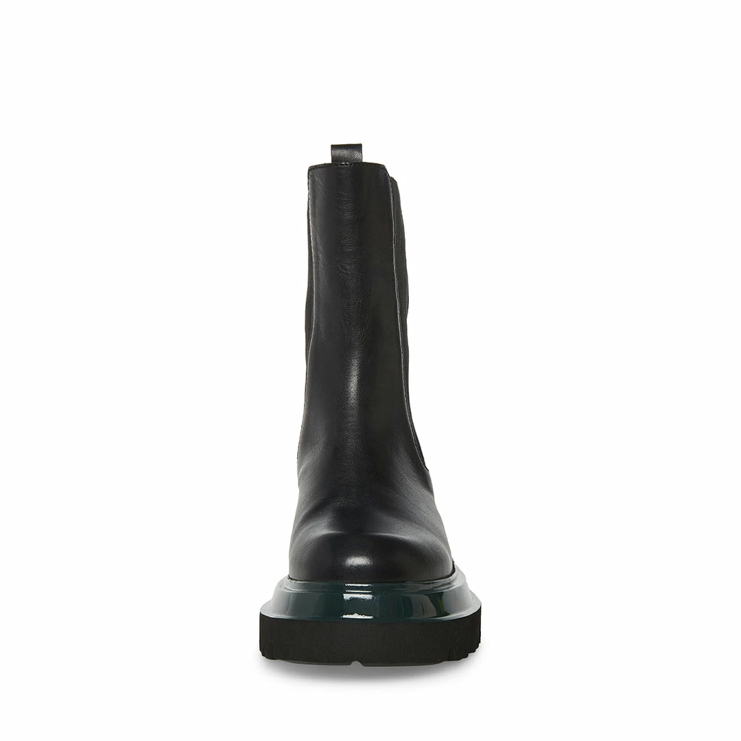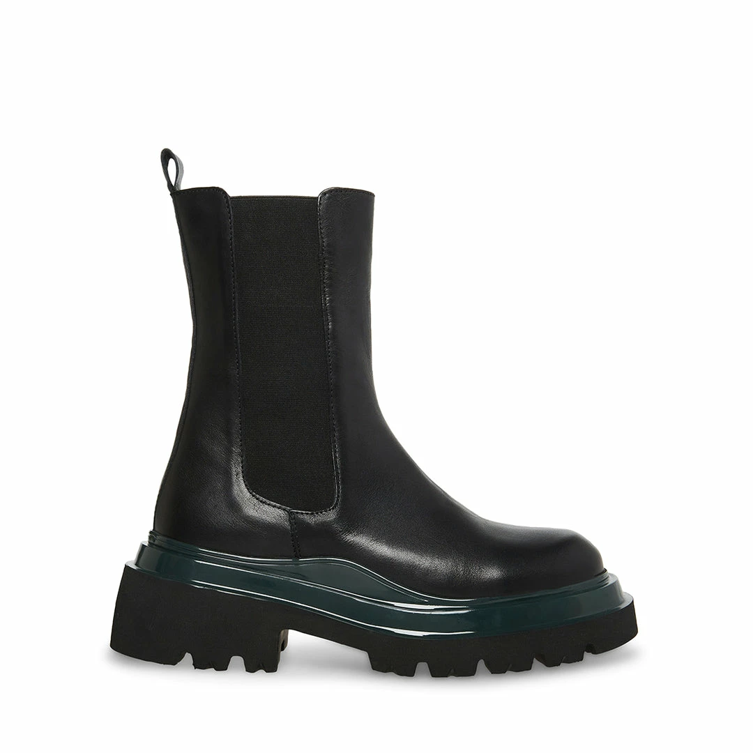 The BUXTON ChelseaΒ bootΒ features a substantialΒ platformΒ lug sole separated from the mid-calf leather upper by a stripe of contrast color.
