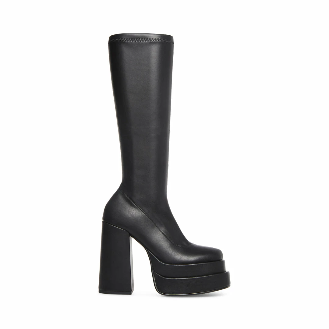 The CYPRESS knee boot combines a stretch upper and an extra-high block heel for the ultimate leg-lengthening, calf-defining fit. The tiered front platform keeps your steps balanced and secure with a wide base.