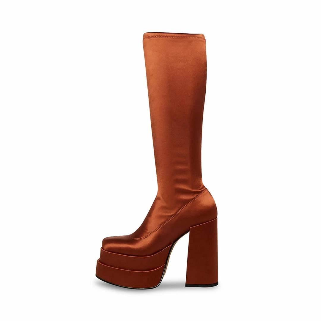 The CYPRESS kneeΒ bootΒ combines a stretch upper and an extra-high block heel for the ultimate leg-lengthening, calf-defining fit. The tiered frontΒ platformΒ keeps your steps balanced and secure with a wide base.