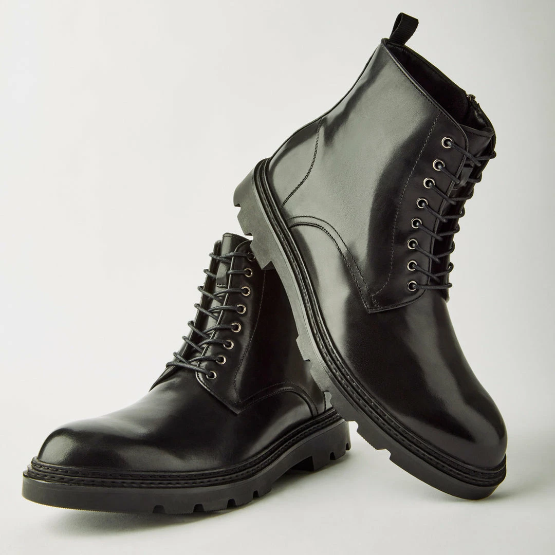 - Lug soleΒ leather boot