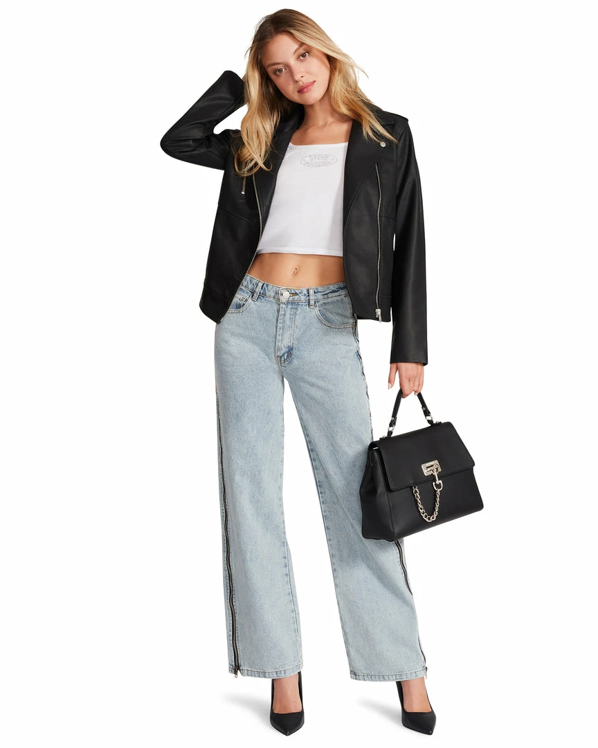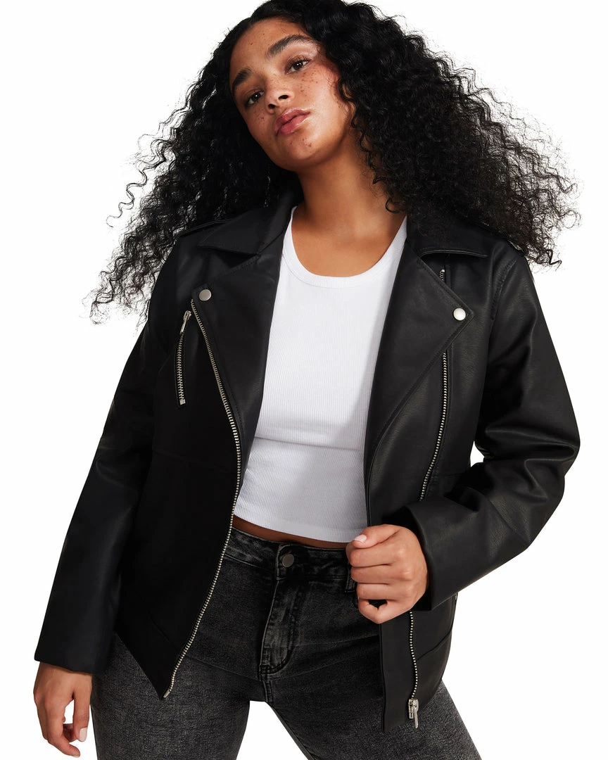 JULIA is the quintessential moto jacket updated with an oversized silhouette.