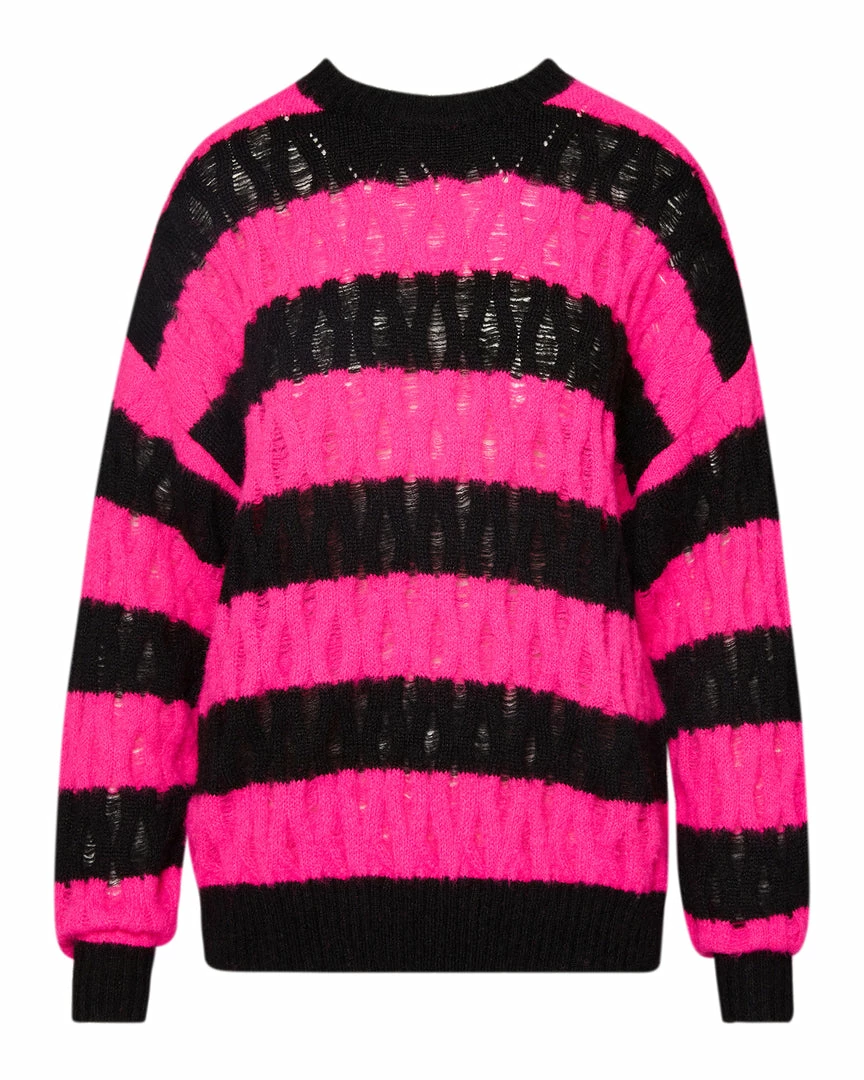 A drop shoulder construction with cable knit texture gives the striped KARLIΒ sweaterΒ its slouchy silhouette.