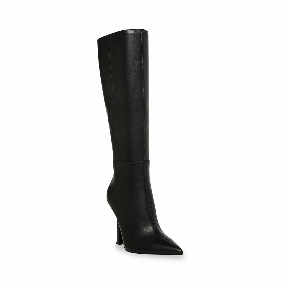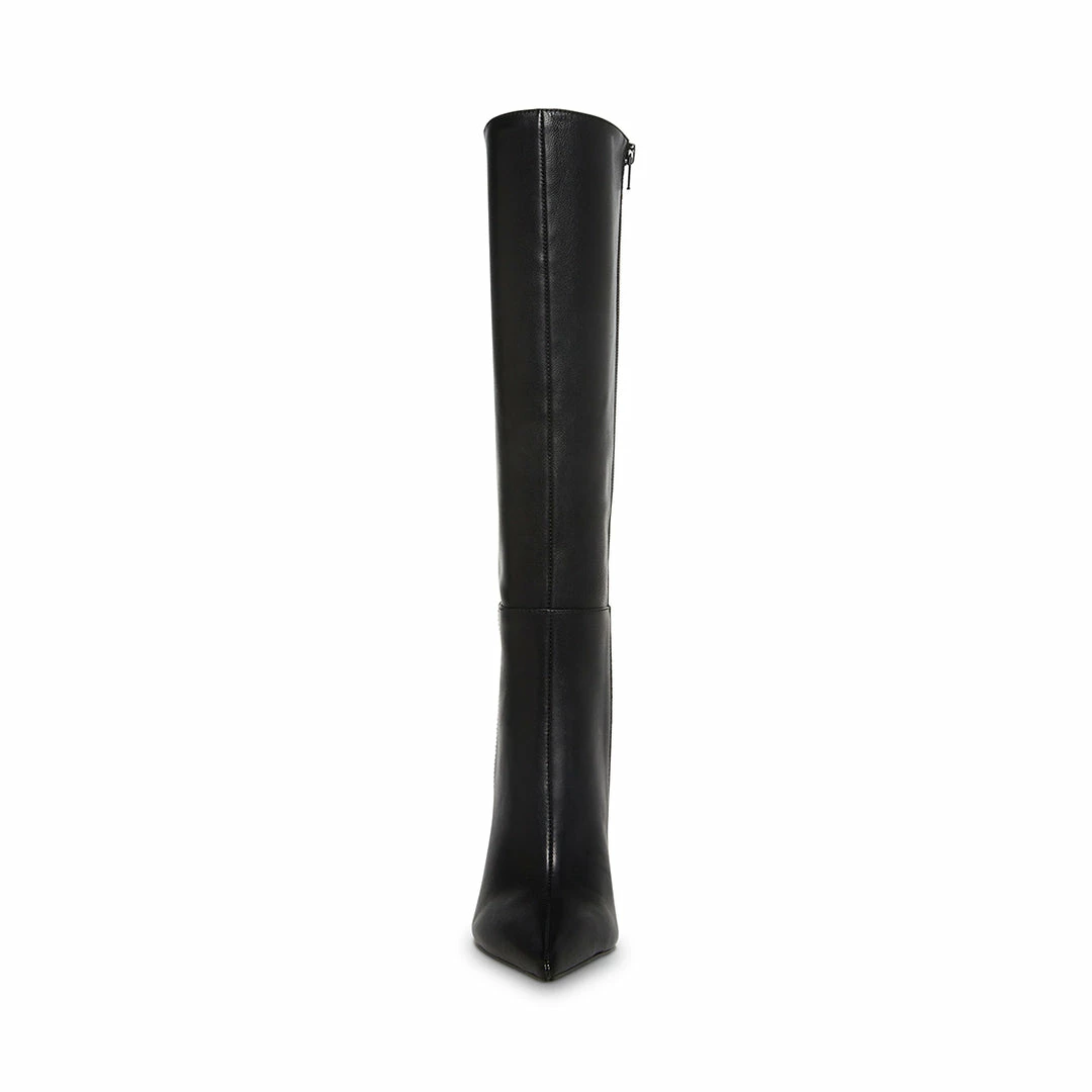 KATHLEEN is a knee high boot with a full leather upper that ends in a stiletto and a point toe.