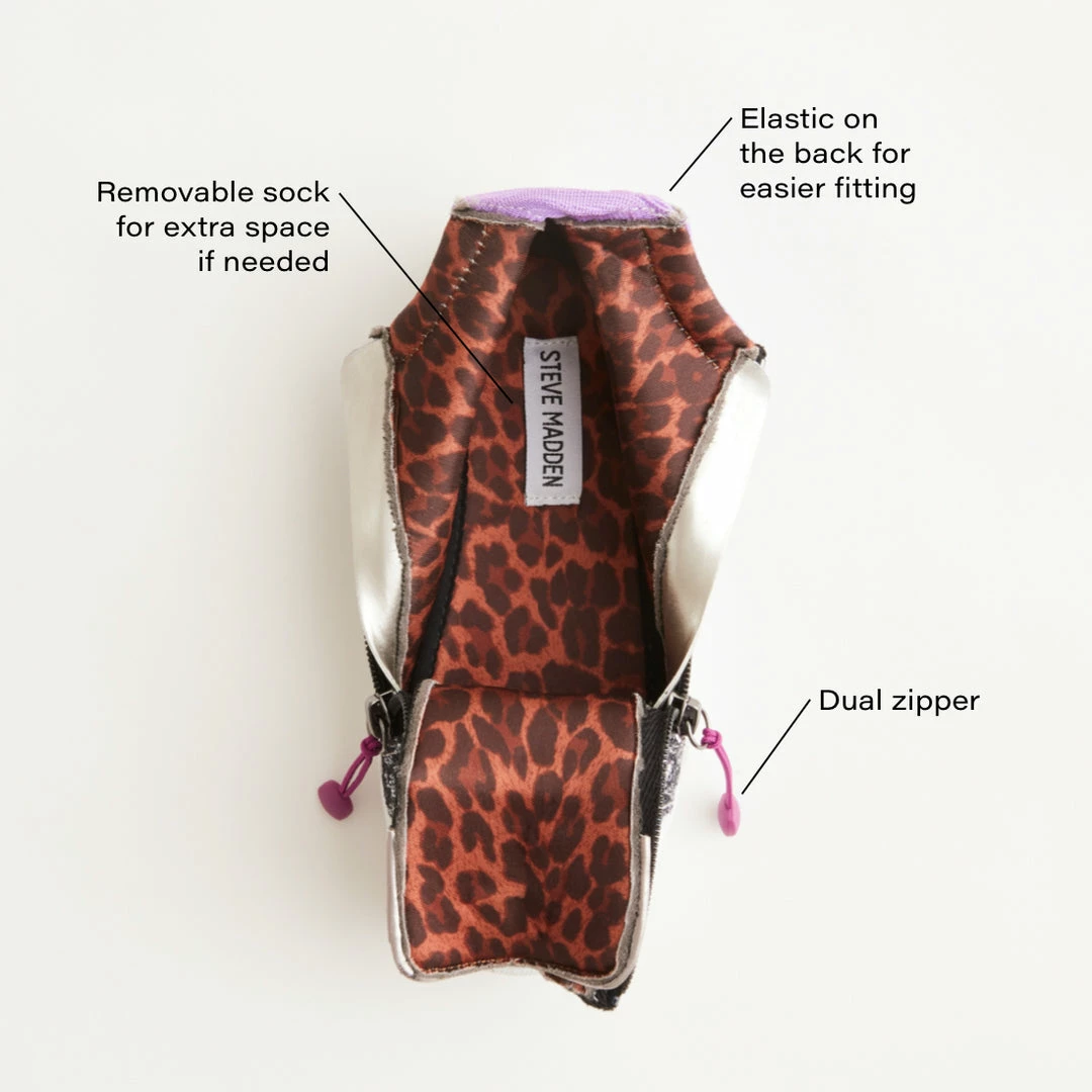 Meet her new colorful sidekick! ALAYLAA features dual zippers with long pull tabs for easy on and off, and elastic laces that make plenty of room for all foot widths.