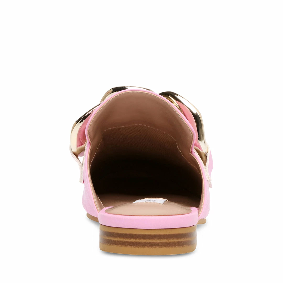 A gigantic chain link strap lends lighthearted luxury to this classic mule β a choice silhouette of the season and favorite of cool girls everywhere.Β