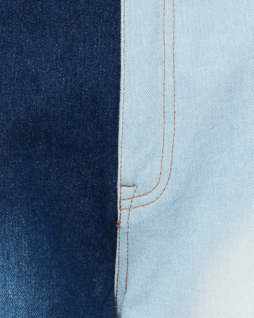 - Blocked denim patchwork panels