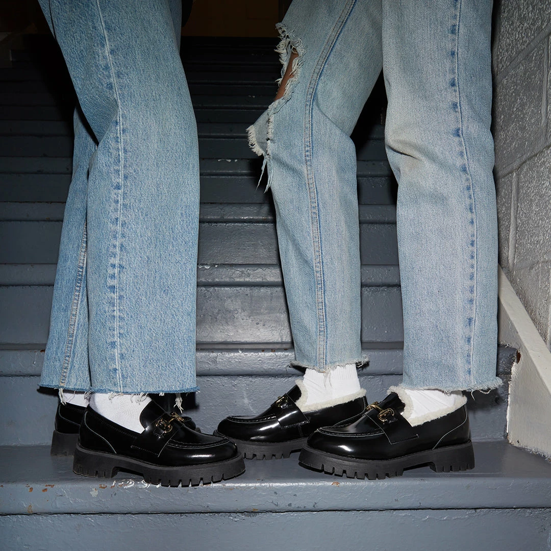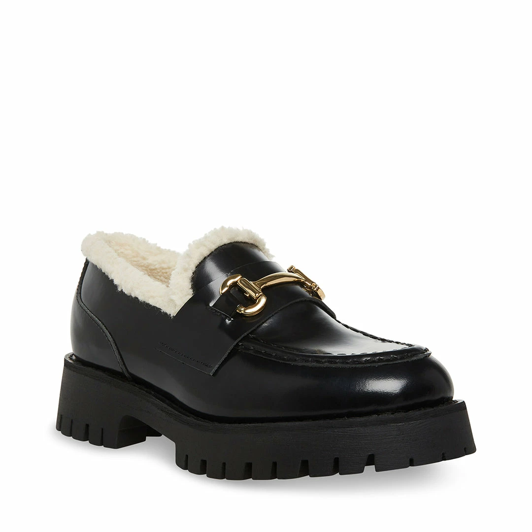 LANDO-F is a leather bit loafer lined in faux shearling and set on a substantial lug sole.