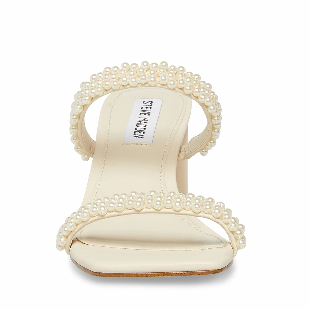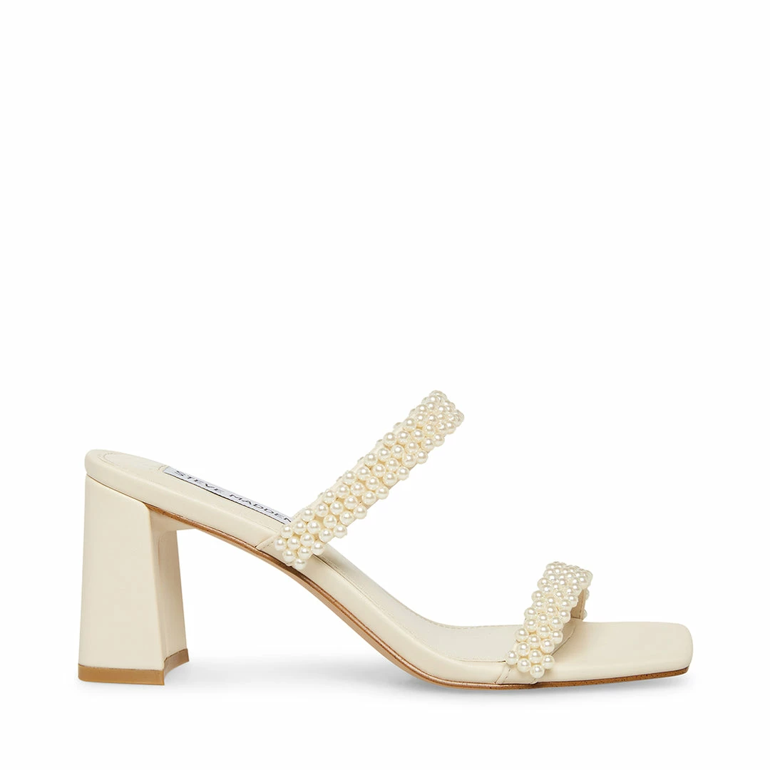 The LILAH-P is a low block heel slide sandal with faux pearl embellished straps and a square toe.
