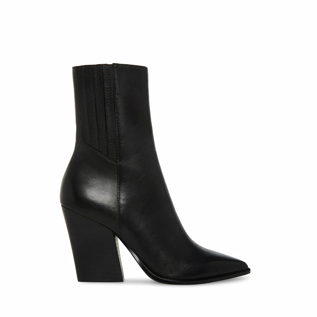 A point toe and a tapered heel give the leather RICKKI boot its sleek look, while finger gores down the sides add subtle texture.