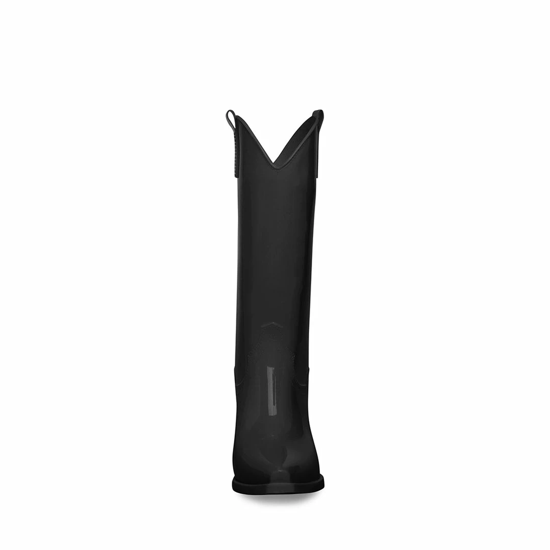 Why pick between a rain boot and a cowboy boot? SHALLOW is a continuously molded waterproof boot with western-inspired details like the point toe, the angled block heel, and the arched sides of the top.