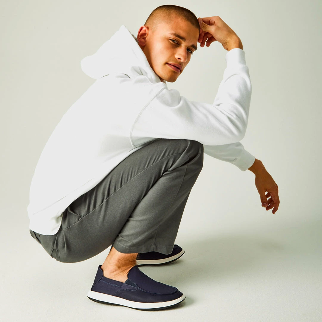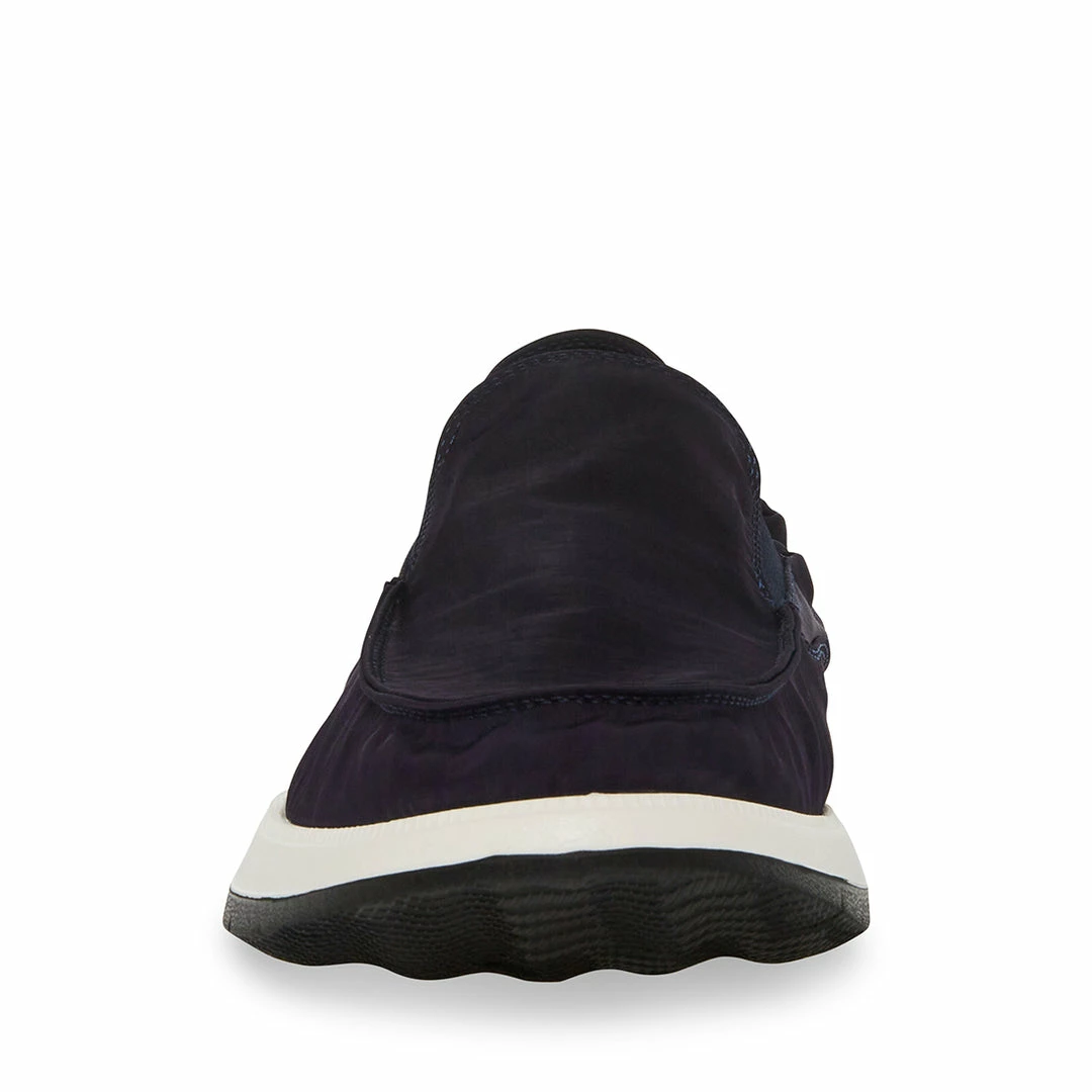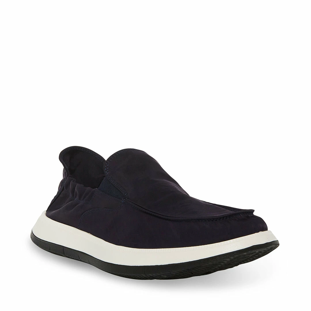 SONNY is a casual slip-on shoe with a buttery soft stretch fabric construction, a moccasin seam around the top, and a wide rubber sole.