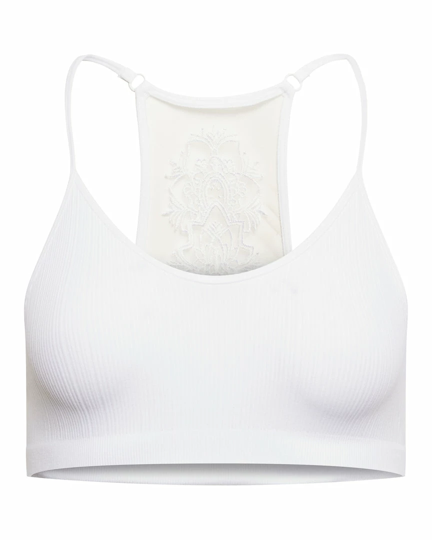 Align your chakras in this soft racerback bralette featuring intricate lace detailing.