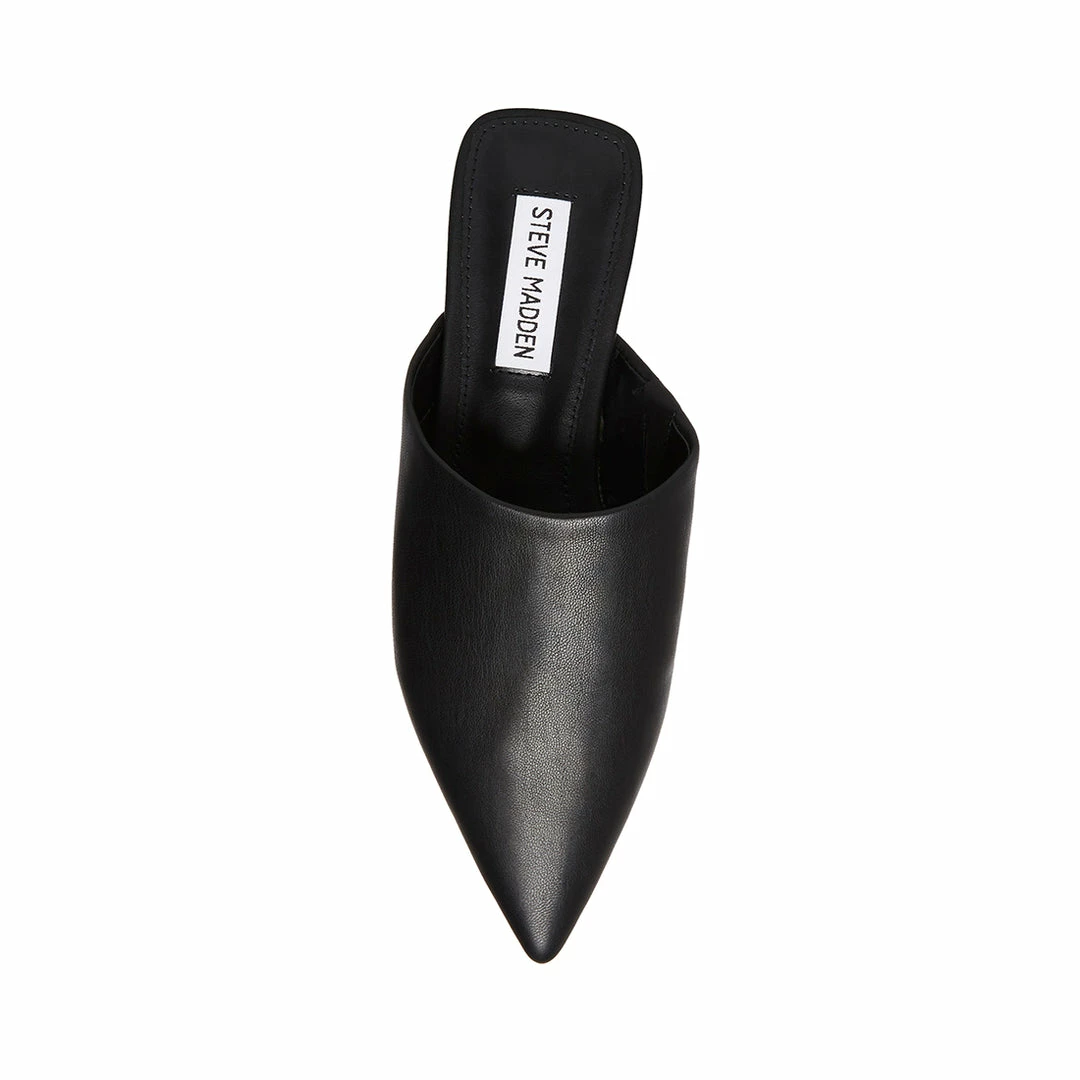 Although super-simple, this new mule makes a sophisticated statement with a long pointed toe, barely-there heel and close-fitting upper that holds the style in place.Β