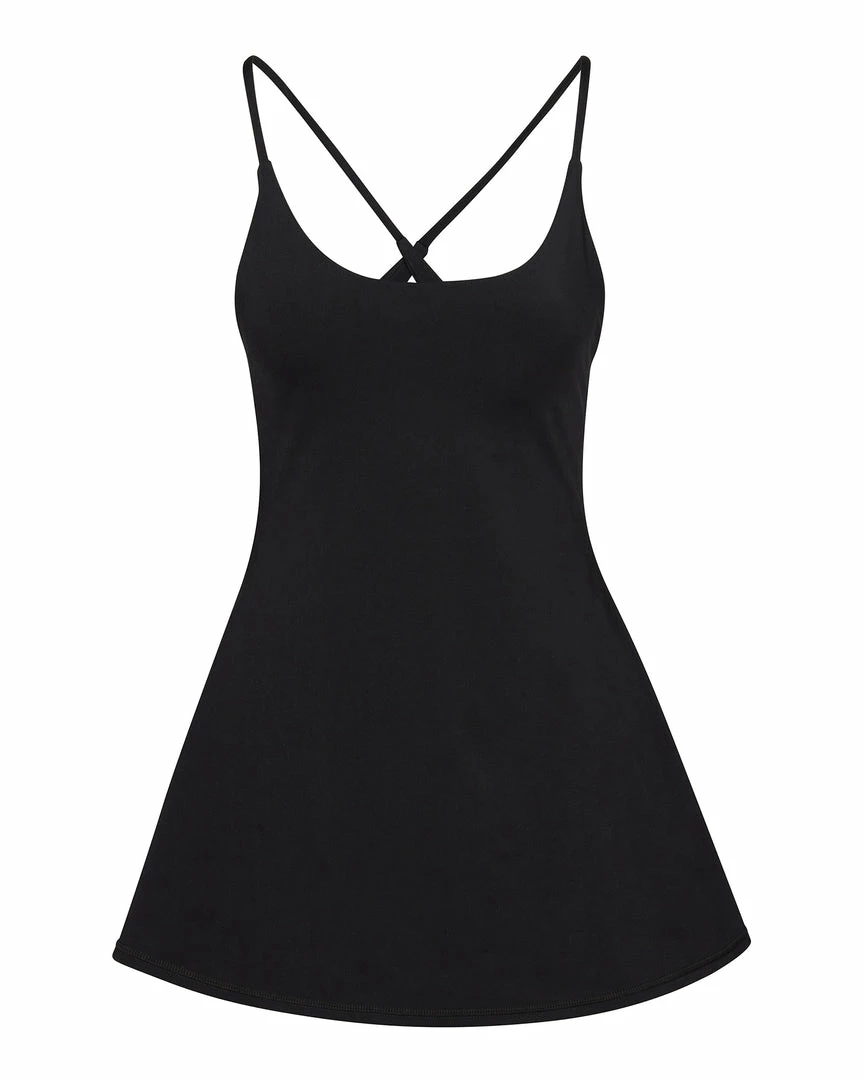 Your active lifestyle deserves this dress. Crafted from stretch jersey material, this style features built-in bike shorts and pockets.
