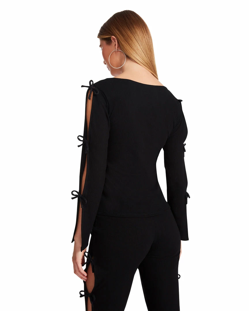 The bows down the split sleeves of the ANGELINA top give this stretch top extra visual style.