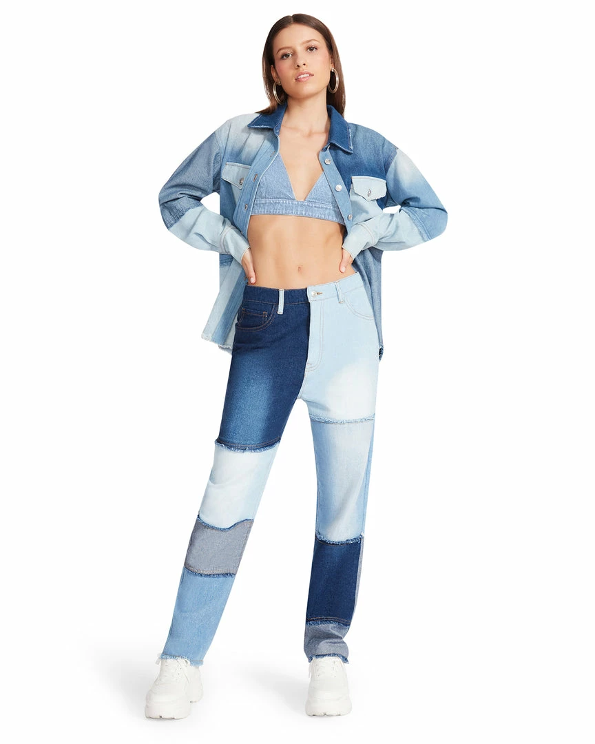 Add texture and depth to casual looks with KYLIE, a denim patchwork shirt-jacket that’s perfect for layering.