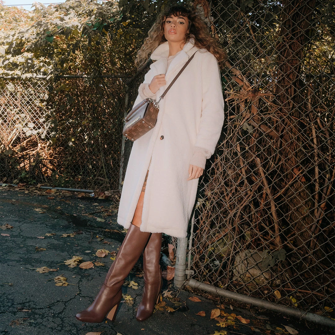The ALLY highΒ heelΒ leather kneeΒ bootΒ is finished finished with an interior zipper to ensure a calf-defining fit.