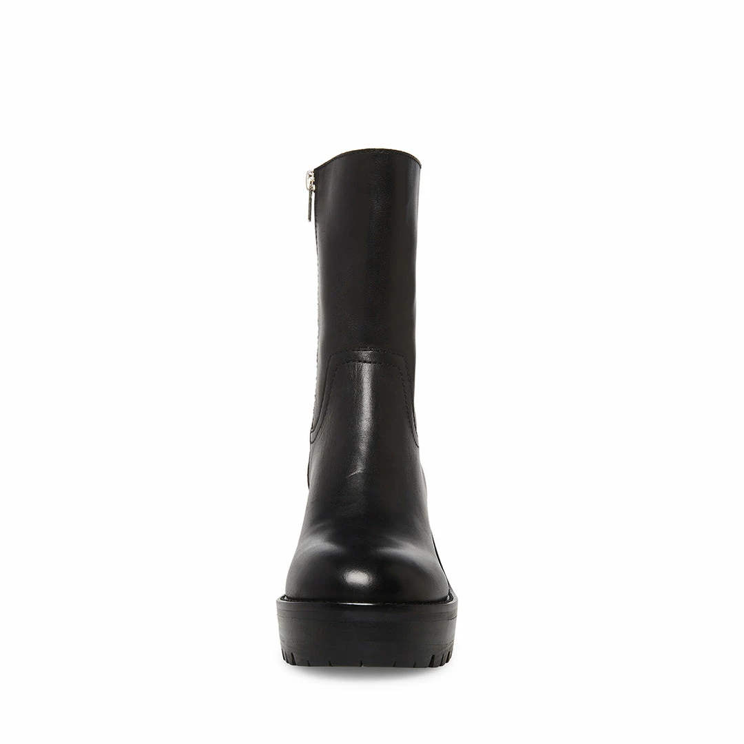 The smooth leather upper of the ANNALYN mid-calf boots is matched with a treaded platform heel sole for textural contrast.