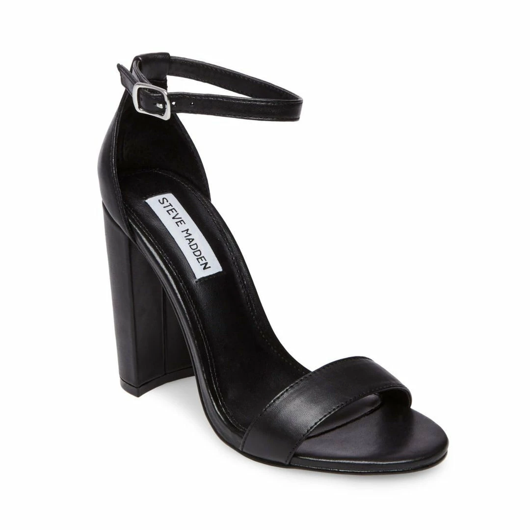 Get your block heel groove on in CARRSON.Β Features single band across toe with adjustable buckle strap at ankle.Β This must-have 4 inch heel sandal can be paired with everything from skinny jeans to bodycons.