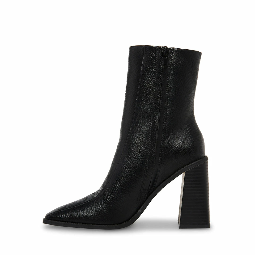 A square heel and an elongated square toe define the silhouette of the DONNA vegan leather ankle boot.