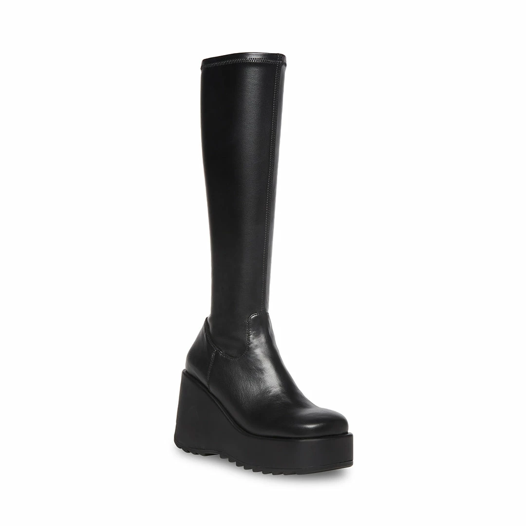 Thereβs nothing boring about DUKE30. An homage to 90s grunge, these knee-high head turners are designed with soft leather material and sit on an exaggerated platform sole.