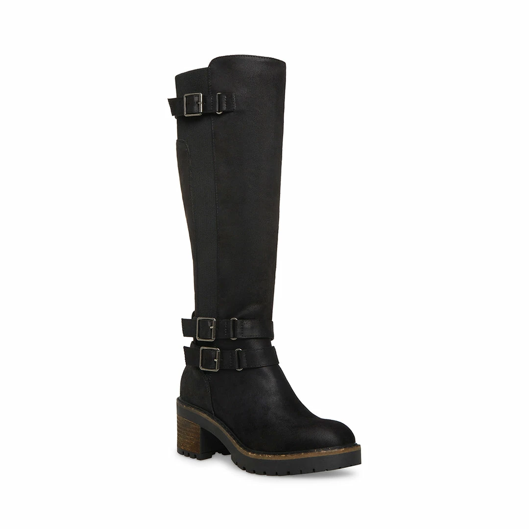 The TIMBER boot takes a knee high riding boot design and adds stretch gores down the sides and around the back of the calf for easy movement. Buckle straps and a treaded sole finish the look.