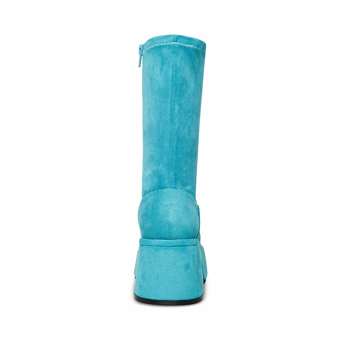 ZURI is a mid-calfΒ bootΒ in a monochrome micro suede design featuring an ankle-defining fit and a wideΒ platformΒ with a block heel at the back.